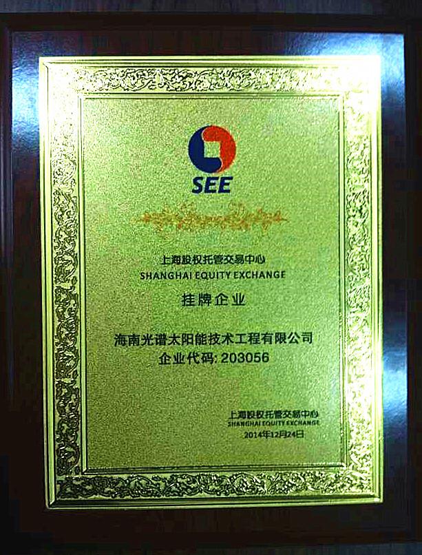 海南光譜節(jié)能環(huán)保科技有限公司成立于2001年,注冊資本1018萬元人民幣,是一家專業(yè)的太陽能、中央空調(diào)工程技術(shù)系統(tǒng)集成商。2014年12月24日,我司在上海股權(quán)托管交易中心成功掛牌,上股交代碼為:203056。