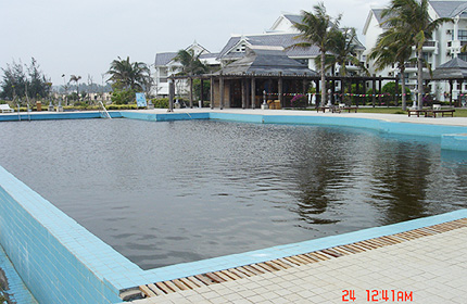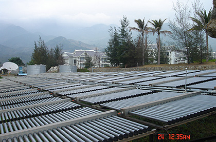 該工程分為前后兩期工程,一期工程是在距海邊50米處,開(kāi)挖2000平方米的沙坑,在沙灘上做基礎(chǔ),安裝600平方米太陽(yáng)能集熱管,日產(chǎn)熱水60噸。二期安裝700平方米太能集熱管。