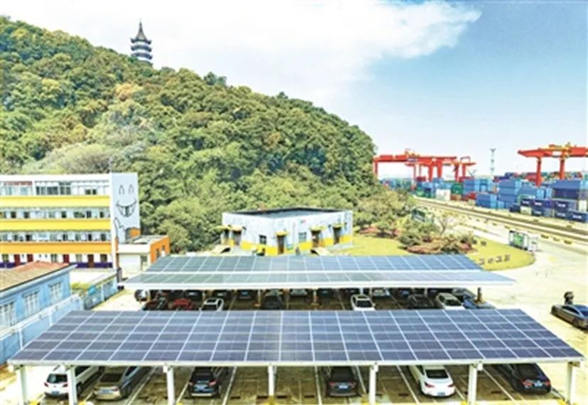 項目案例:寧波舟山港首設(shè)一體式光伏充電車棚項目,該一體式車棚頂上安裝了光伏發(fā)電板,棚內(nèi)設(shè)有10個直流充電樁,合理使用綠色能源。按每輛車平均充電5-6小時計算,該車棚每天能滿足近30輛電動汽車的充電需求。