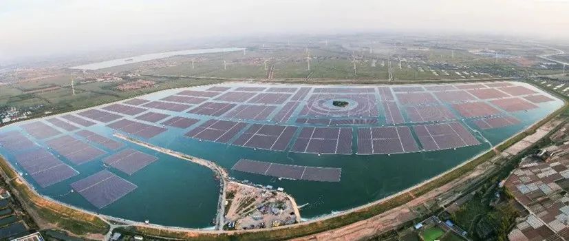 項目案例:世界單體容量最大漂浮式光伏電站——華能德州丁莊水上漂浮式光伏電站,總裝機320兆瓦。
