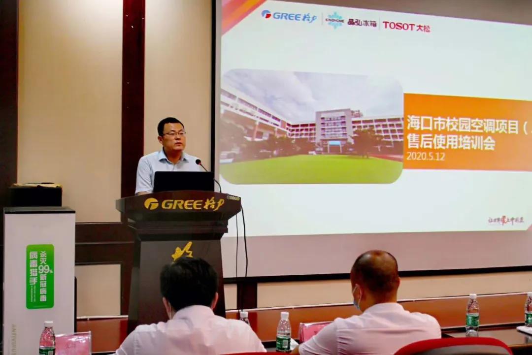 格力電器海南公司校園空調(diào)二期項目副經(jīng)理羅開健、符芳良,??谵k事處主任張鋒等人出席培訓(xùn)活動。