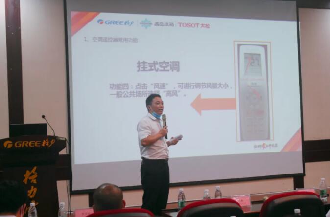 本次培訓(xùn)會分別對“格力空調(diào)報修流程及方法”、“空調(diào)使用方法”、“常見空調(diào)假性故障排查指導(dǎo)”等內(nèi)容開展培訓(xùn),受訓(xùn)人員積極參與互動討論,培訓(xùn)效果良好。培訓(xùn)會還增加實機演示環(huán)節(jié),進一步讓受訓(xùn)人員了解產(chǎn)品及故障解決辦法。